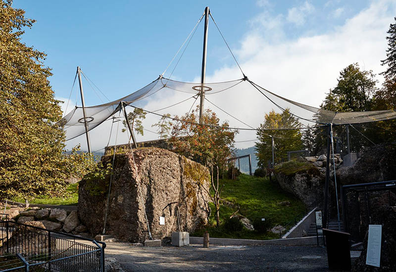 AVIARY FOR BEARDED VULTURE - GOLDAU Design: 2014Completed: 2014Work assigned: Design; structural analysis; detailed engineering; workshop design steel, cables, net and foundation.